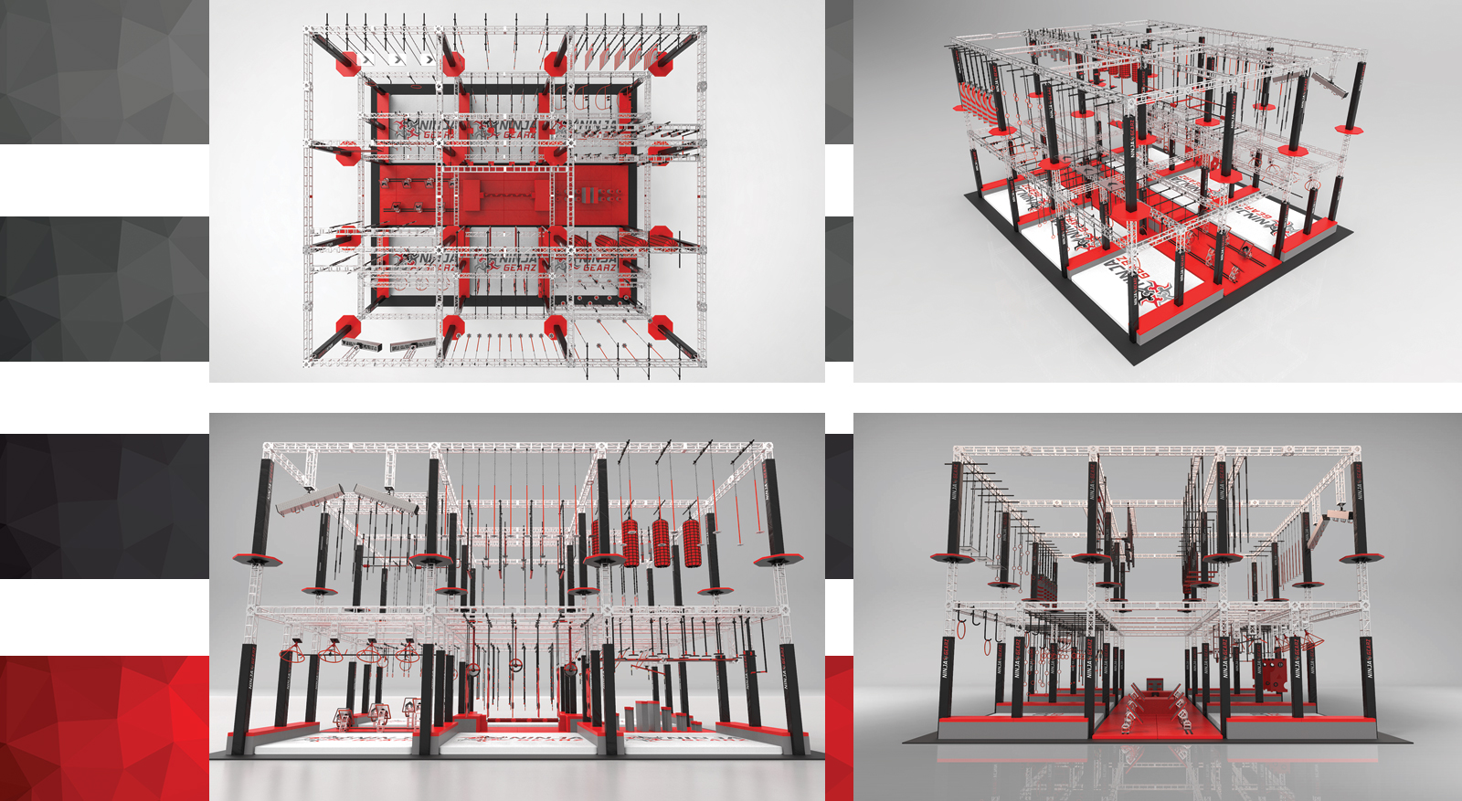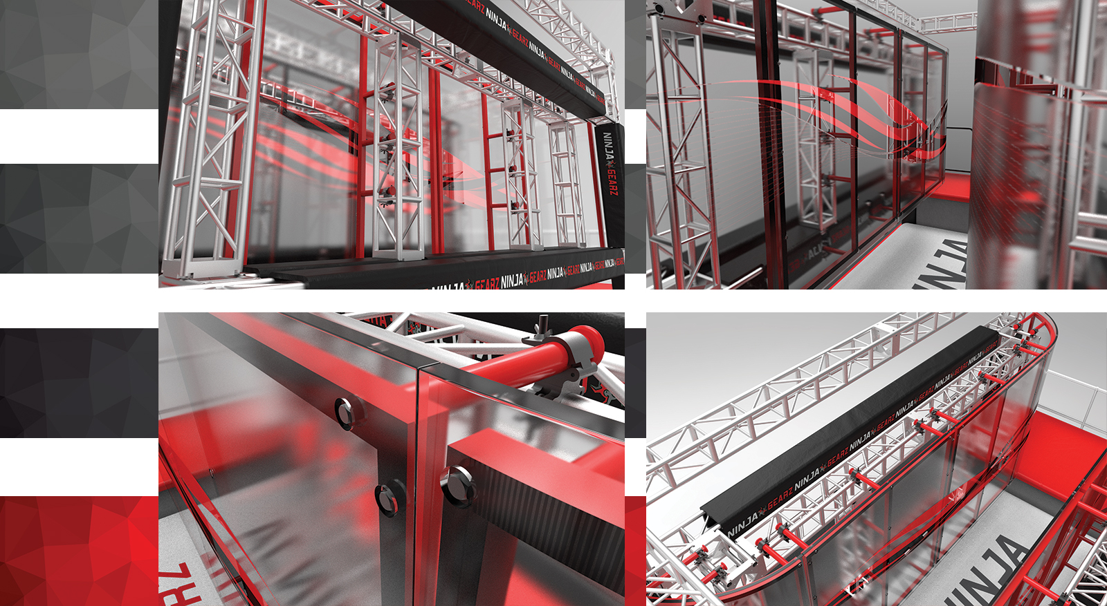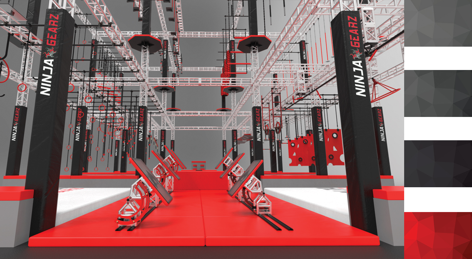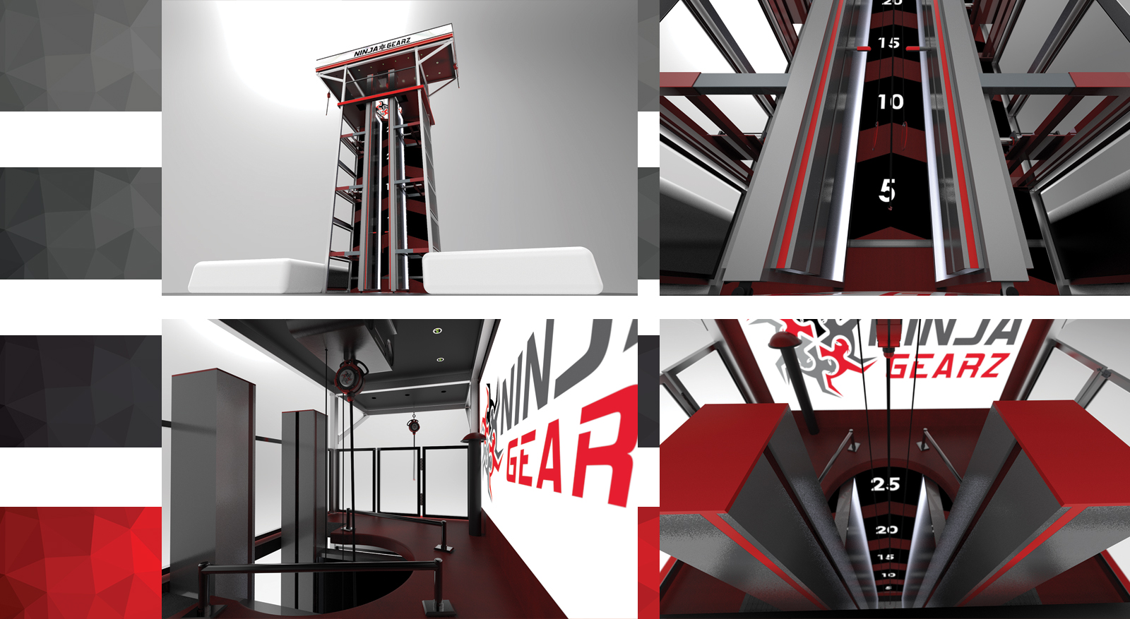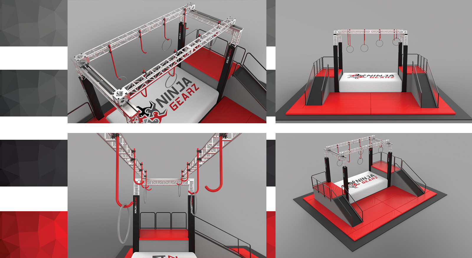 NINJA GEARZ is dedicated to bringing the most unique Ninja obstacles, elements and products to life. We set out to design and engineer a revolutionary patent pending product line that will change the way you look at Ninja obstacles. It is with great pride, NINJA GEARZ introduces the World’s First and only line of automated Ninja obstacles. Using hydraulics, pneumatics, gears and electrical drivetrains, our obstacles allow the user to adjust the height, width and distance with the push of a button. Our experienced team of engineers specialize in designing, manufacturing and building custom Ninja Warrior obstacles that are not only challenging but fun for all ages. At NINJA GEARZ we turn the most complicated and sophisticated designs and ideas into reality. By using an out of the box approach, our obstacles are designed with a purpose. By designing and manufacturing our products to a higher standard of quality, we ensure that these products can withstand the wear and tear of daily use. Truly passionate about what we do, we are on a relentless pursuit to bring you amazing and elaborate obstacles that will awaken the Ninja Warrior in you.